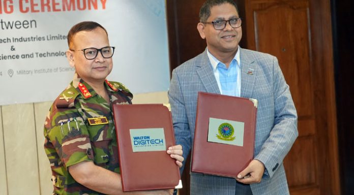 সহযোগিতা, উদ্ভাবন এবং প্রযুক্তিগত অগ্রগতি প্রচারের লক্ষ্যে তিন বছরের অংশীদারিত্ব প্রতিষ্ঠার জন্য একটি সমঝোতা স্মারক (এমওইউ) স্বাক্ষর করেছে ওয়ালটন ডিজি-টেক ইন্ডাস্ট্রিজ লিমিটেড এবং মিলিটারি ইনস্টিটিউট অব সায়েন্স অ্যান্ড টেকনোলজি (এমআইএসটি)।