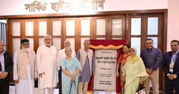 চট্টগ্রামের কালুরঘাটে কর্ণফুলী নদীর ওপর বহুল প্রত্যাশিত রেলসহ সড়ক সেতু নির্মাণকাজের আনুষ্ঠানিক উদ্বোধন ঘোষণা করেছেন অন্তর্বর্তী সরকারের প্রধান উপদেষ্টা প্রফেসর ড. মুহাম্মদ ইউনূস।